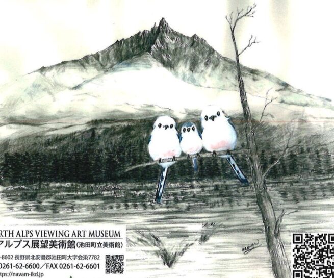 北アルプス展望美術館(池田町立美術館)は、正面に北アルプス連峰と安曇野の広大なパノラマを一望できる丘のうえにあります。北アルプスの山々、のどかな田園風景・・・。