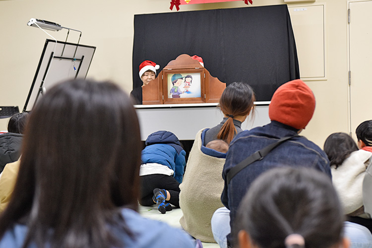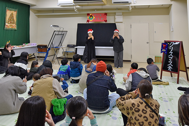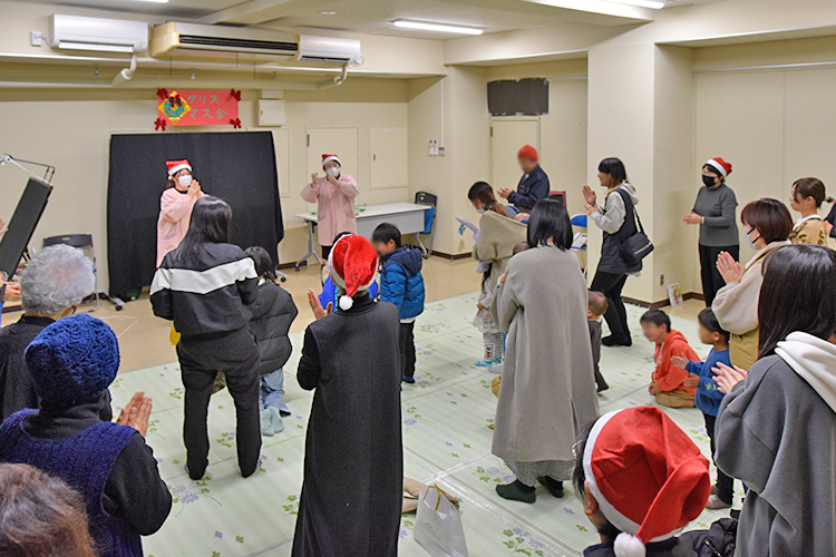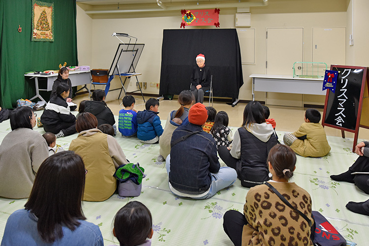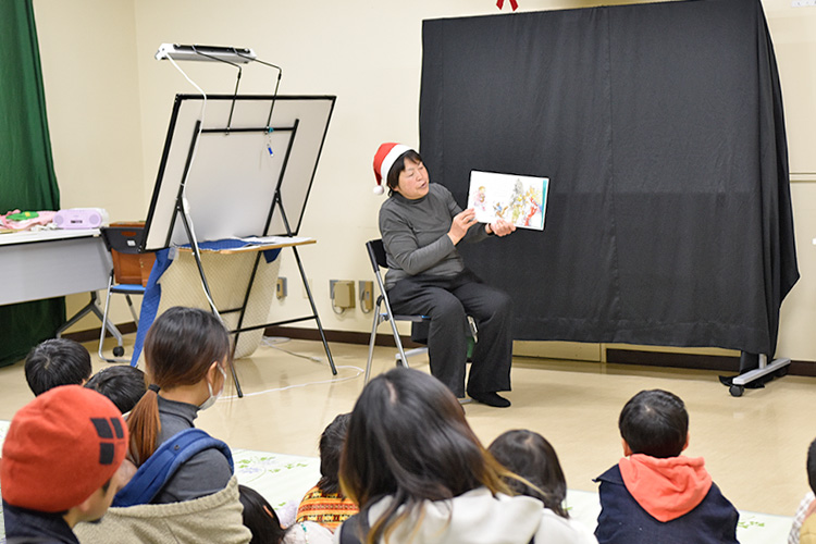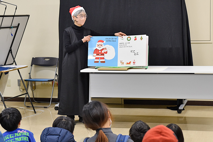 令和7年度「図書館クリスマス会」が開催されました! 2025年12月13日 お知らせ, イベント情報 12月13日(土)阿南町立図書館にて「図書館クリスマス会」が開催されました。約30人の親子のみなさんにご参加いただき、クリスマスをテーマにしたボランティアさんによる、語りや絵本の読み聞かせ、紙芝居、手遊び、パネルシアターのほか、保育士さんによるエプロンシアターやリズムダンスで楽しい時間を過ごすことができました。最後にはサンタクロースが登場し、子どもたちにプレゼントが配られ、とても楽しいクリスマス会となりました。ご参加いただき、ありがとうございました!
